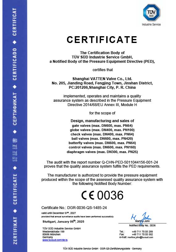 Vatten Valve Group, uma empresa de válvulas de automação industrial de renome mundial originária de Saarland, Alemanha, é especializada na pesquisa, desenvolvimento e fabricação de produtos essenciais, como válvulas de esfera de controle automático, válvulas borboleta e válvulas reguladoras. Aproveitando nossa experiência tecnológica excepcional, fornecemos soluções de válvulas inovadoras e suporte técnico profissional para indústrias críticas, incluindo energia, química, tratamento de água, farmacêutica e processamento de alimentos.